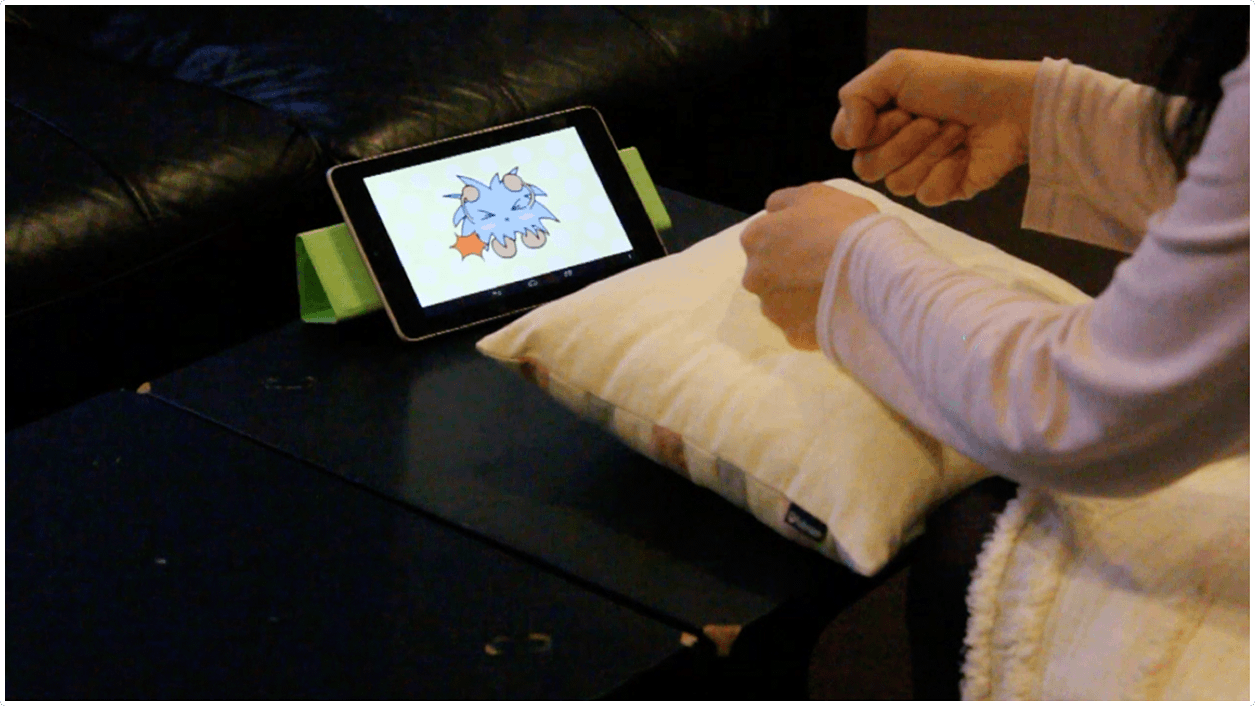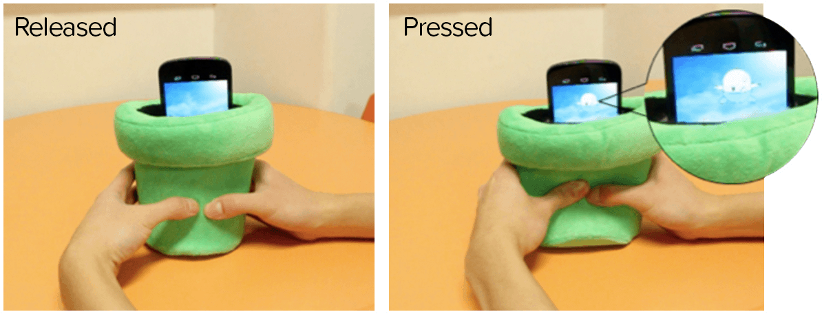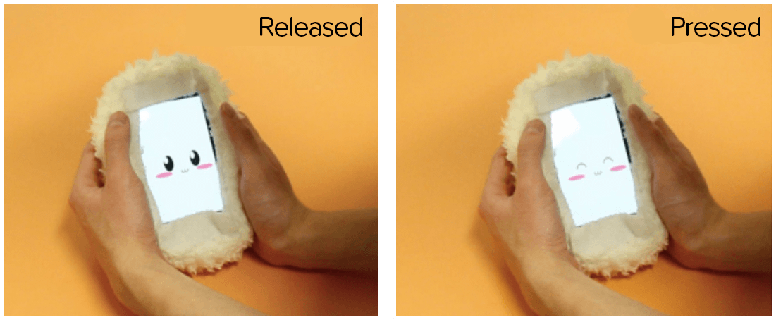 Cuddly transforms a regular mobile phone into an interactive tool by embedding it into soft objects that users already have at home. It leverages the phone’s camera and flashlight (LED) to sense ambient brightness levels. Using this information, Cuddly