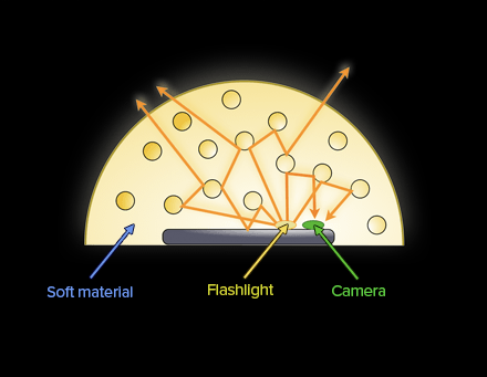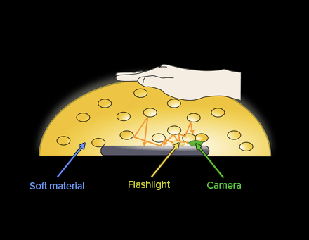 However, when pressure is applied, the density increases, reducing the light entering the camera. Hence, reducing the brightness.